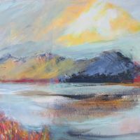 Hello. Welcome to my website. I'm a painter and printmaker who lives in the Scottish Highlands. Most of my work is landscape-inspired. I sketch outdoors in all seasons - hillscapes and seascapes - and bring sketches back to my studio to work into finished drawings and paintings. My paintings are mostly mixed media/acrylic and I make various types of prints on my studio printing press - linocuts, collagraphs, etchings, aquatints and photopolymer prints. You can see a selection of recent work in the 'Galleries'.
